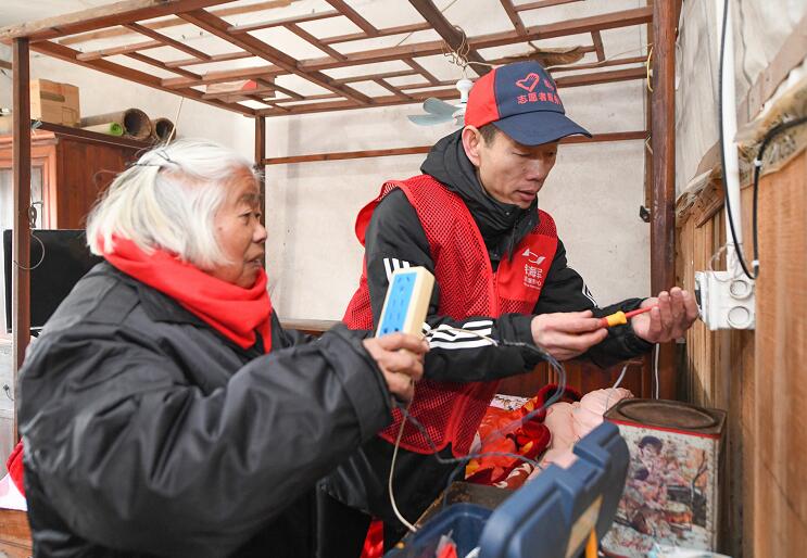 1月8日,志愿者帶著禮物來到老人家中,他們給老人圍上溫暖的圍巾,穿上厚實的外套,并給她鋪上嶄新的被子,老人笑得合不攏嘴。同時,志愿者還對老人房中的室內電氣線路進行了檢查與維修,為其確保用電安全。志愿者胡群豐表示:“天氣寒冷,能夠給老人送上安全與溫暖,我們很自豪。”