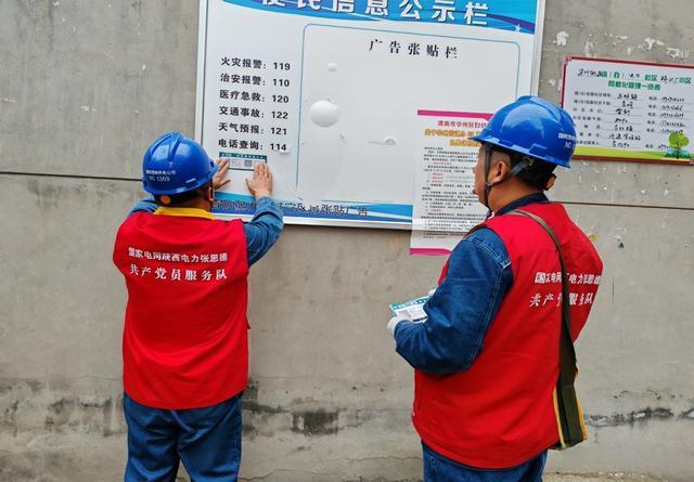 為持續做好優質服務工作,暢通服務渠道,將服務關口前移,真正實現“全方位、全覆蓋、零距離”溝通,10月20日,國網渭南供電公司組織黨員服務隊、相關臺區經理在老舊小區、人流集中地點發放供電服務貼,在電表箱醒目位置、小區公示欄進行張貼。一張小小電力服務貼,除了印有臺區經理電話、微信二維碼外,還附有供電所24小時服務搶修電話、“網上國網”APP下載碼。