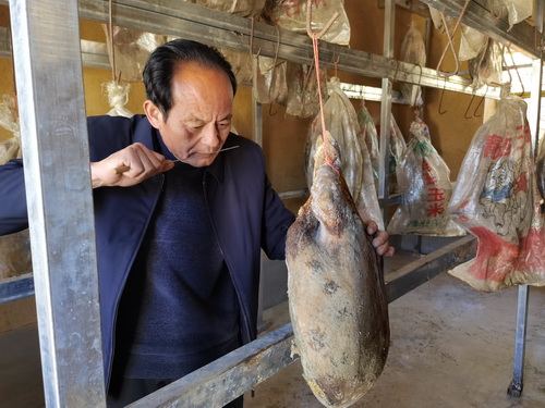 腌制火腿是黎馬村村民傳承已久的儲肉技藝,加上當?shù)鬲毺氐臍夂颦h(huán)境,黎馬火腿形美色艷香糯的獨特品質一直在當?shù)匦∮忻麣狻5珕渭覇螒綦缰苹鹜炔还庖?guī)模小,質量也參差不齊。黎馬火腿雖然作為當?shù)氐奶厣r產品,但一直未能創(chuàng)造出良好的經濟價值。如何挖掘黎馬村火腿特色,將鄉(xiāng)村特色轉化為鄉(xiāng)村經濟是李華所在的工作隊長期思考的問題。