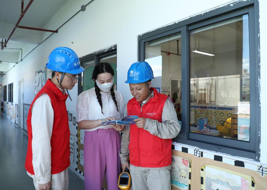 當(dāng)天,該公司“雙滿意”共產(chǎn)黨員服務(wù)隊(duì)逐一檢查了校內(nèi)線路設(shè)備和開關(guān)、插座,查看是否存在漏電現(xiàn)象并及時(shí)進(jìn)行維護(hù)。檢查過程中,服務(wù)隊(duì)分發(fā)了安全用電提示卡,向小朋友宣傳安全用電知識(shí),并在學(xué)校黑板報(bào)、走廊等醒目的地方張貼《安全用電宣傳畫》,引導(dǎo)師生安全用電。