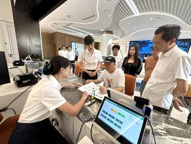 在國網上饒供電公司天佑路智能化營業廳,代表們隨著大廳工作人員一同體驗了智能辦電、交費、打印票據等服務,觀看了公司綠色能源發展、城區網格化服務、支持鄉村振興等成果展示,,并興致勃勃地通過公共系統查詢到了服務自己居住地的供電網格服務人員。