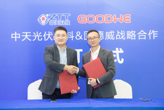 展會現(xiàn)場,中天科技與固德威電源科技簽訂戰(zhàn)略合作協(xié)議,在新能源業(yè)務(wù)系統(tǒng)解決方案、資源開發(fā)等方面進一步深化合作,實現(xiàn)優(yōu)勢互補、共贏發(fā)展。