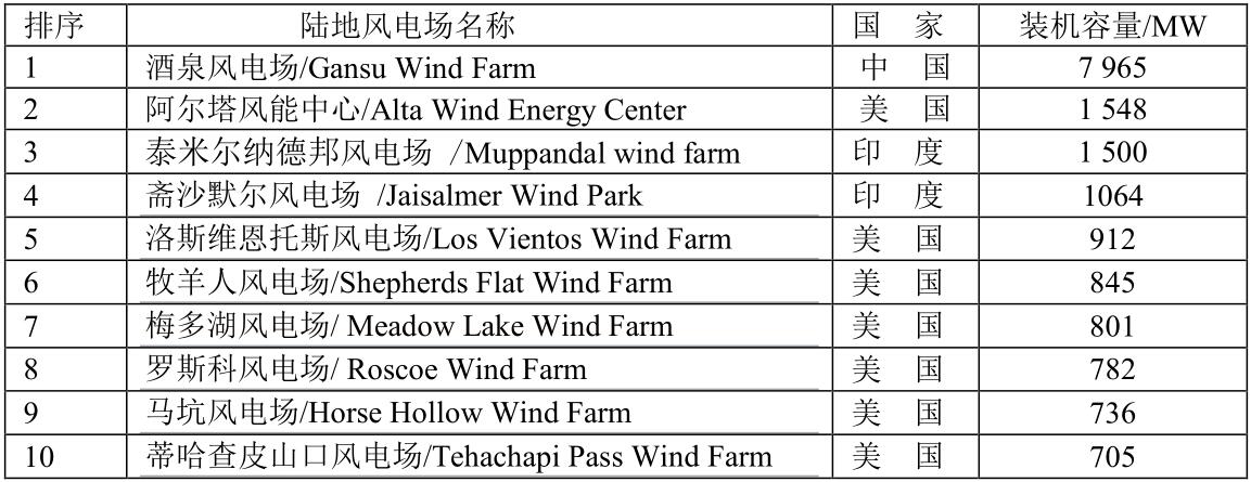 全球十大陸地風(fēng)電場(chǎng)