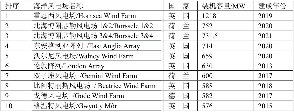 全球十大海洋風(fēng)電場(chǎng)