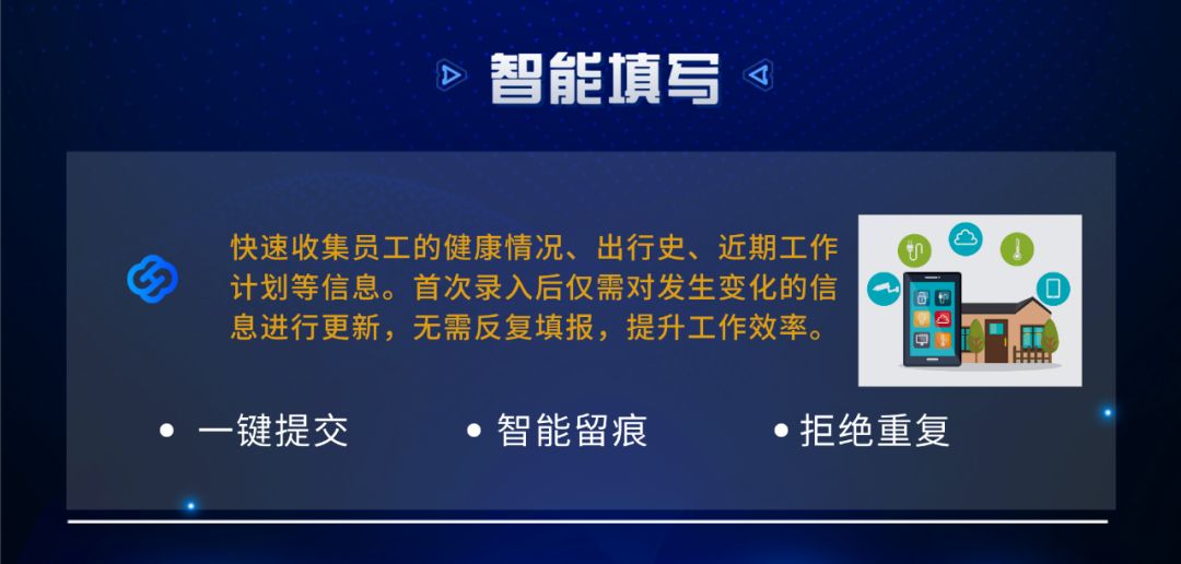 只需微信掃描二維碼進入界面,簡單進行三步操作即可搞定每日繁瑣的數據收集工作,并在系統后臺進行統計和數據匯總。使用說明書?不存在的!一秒上手,簡直So easy!