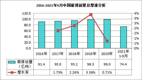 數據顯示,2020年我國碳排放總量約達99.0億噸,預計2021年我國碳排放總量將達101.09億噸。