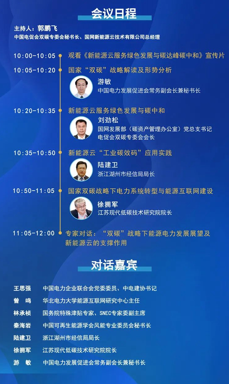 圍繞服務國家“雙碳”戰略,國網新能源云如何支撐國家電網公司“碳達峰碳中和行動方案”“構建新型電力系統行動方案”?6月15日上午,中國電力發展促進會碳達峰碳中和專業委員會以“新能源云服務“雙碳”共建綠色美好未來”為主題,舉辦《新能源云服務“雙碳”,共建綠色美好未來專家對話論壇活動》,邀請曾鳴、秦海巖、徐擁軍等8位重量級行業大咖在線解讀。