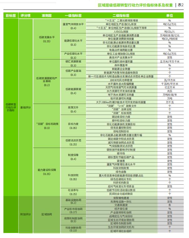 區域層級低碳轉型行動力評價指標體系及權重。綠色和平供圖