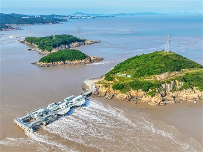 8月23日,浙江省舟山市岱山縣秀山島海域,全球最大兆瓦級潮流能發電機組LHD1600“奮進號”正在平穩運行,源源不斷地將來自大海的清潔能源通過國家電網輸送到千家萬戶。