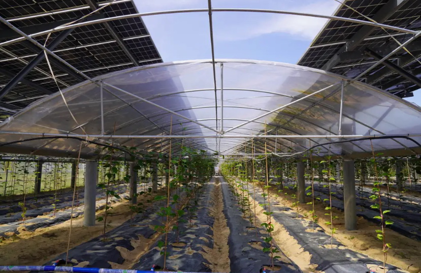 在萬寧和樂鎮勤賽村,16萬塊光伏板下,栽種著一壟壟黃瓜、玉米、辣椒等1200余畝經濟作物。如今長勢喜人的土地,曾長期處于貧瘠撂荒狀態。2022年底,按照“棚上發電、棚下種植、農光互補”的模式和理念,大唐海南公司投資建設萬寧和山70MW農光互補項目,每年可為電網輸送1.2億千瓦時綠電,也讓曾經的沙灘荒地成了“豐收田”。