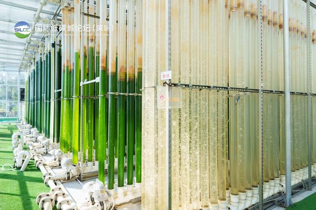 踏入微藻陽光房,仿佛步入一片“森林氧吧”,在一排排透明的立柱反應器中,綠藻正通過光合作用,不斷“吞噬”著提純后的二氧化碳。