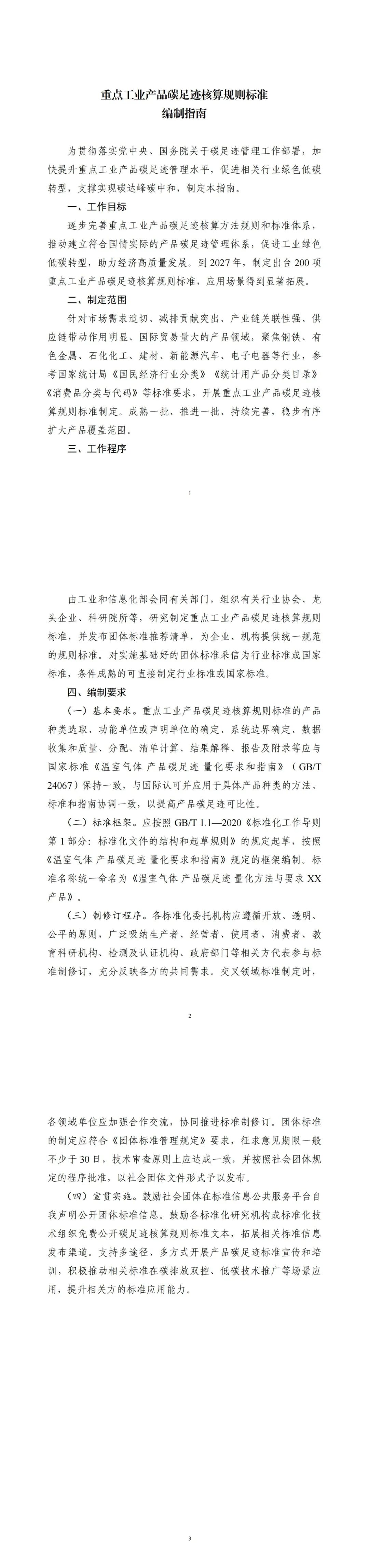 為貫徹落實黨中央、國務院關于碳足跡管理工作部署,加快提升重點工業產品碳足跡管理水平,促進相關行業綠色低碳轉型,支撐實現碳達峰碳中和,特制定《重點工業產品碳足跡核算規則標準編制指南》,請遵照執行。