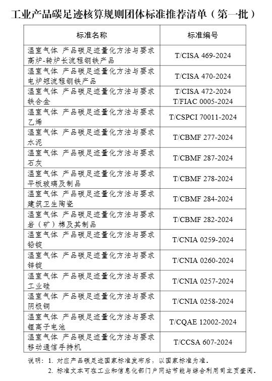 工業和信息化部 生態環境部 國家發展改革委 市場監管總局關于公布工業產品碳足跡核算規則團體標準推薦清單(第一批)的通告