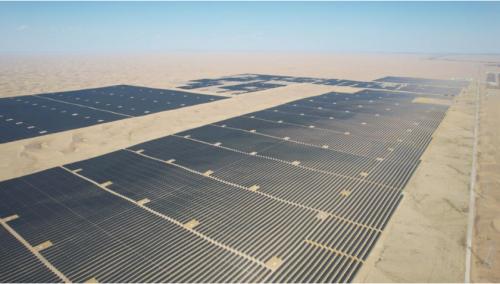 該項目位于武威市涼州區九墩鎮東側的騰格里沙漠邊緣地帶,總裝機容量20萬千瓦,占地面積約6.57平方千米,是甘肅省“十四五”第一批大基地光伏治沙項目之一。項目年均發電量約3.8億千瓦時,每年可節約標準煤11.6萬噸,減少排放二氧化碳31.7萬噸,具有良好的生態環境治理和經濟效益。