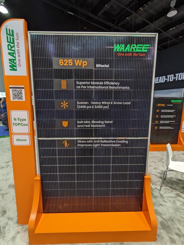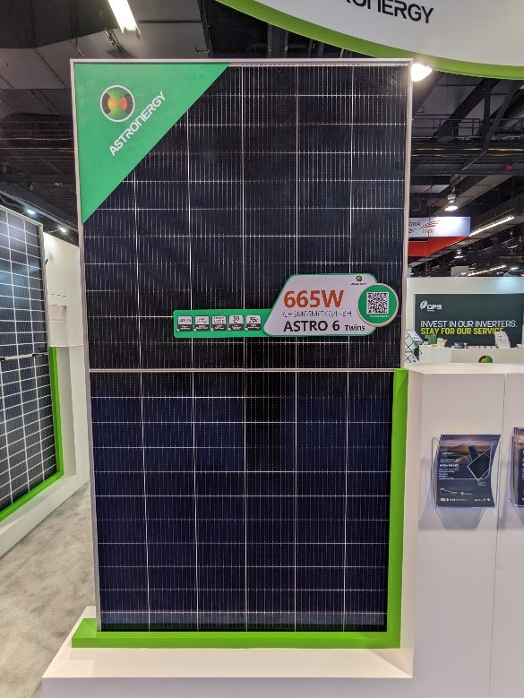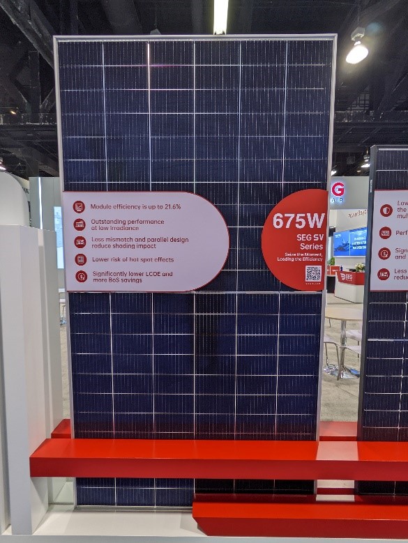 據不完全統計,在本次RE+展會中,中國領軍企業天合光能、阿特斯、正泰,海外企業韓華、SEG、Waaree等10多家光伏領先企業紛紛推出600W+產品。600W+產品在北美已經蔚然成風,成先進組件的代表。