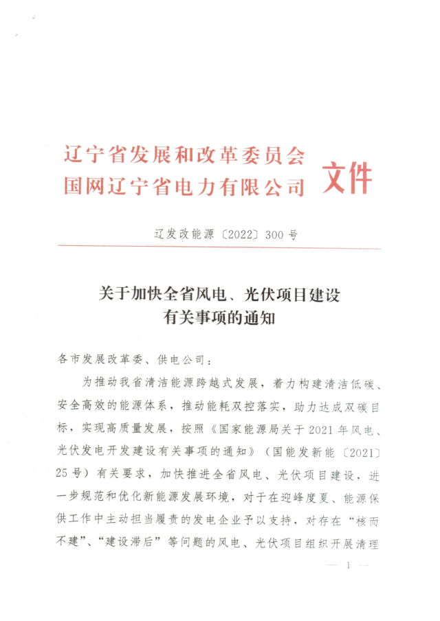 近日,遼寧省發(fā)展和改革委員會、國網(wǎng)遼寧省電力有限公司發(fā)布了《關(guān)于加快全省風(fēng)電、光伏項目建設(shè)有關(guān)事項的通知》。