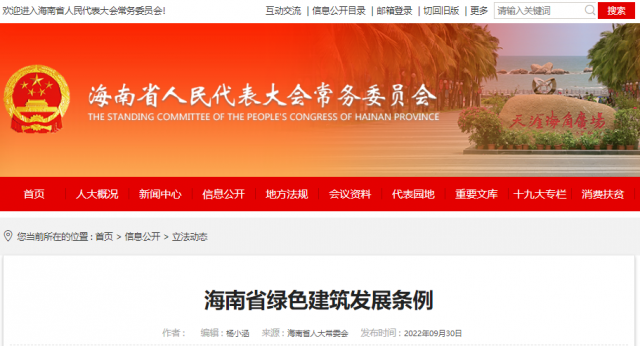 日前召開的海南省六屆人大常委會第三十八次會議審議通過《海南省綠色建筑發展條例》(以下簡稱《條例》),自2023年1月1日起施行。