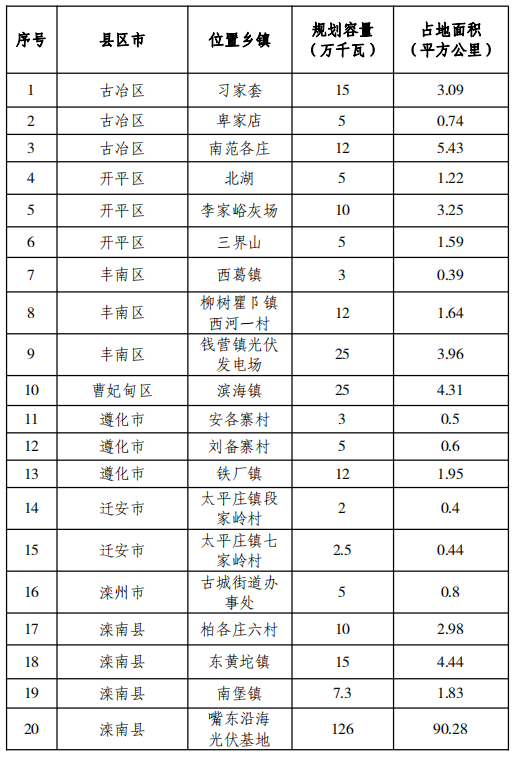 重點任務在南部曹妃甸、灤南、樂亭、海港等縣區,結合水產養殖業、農業、鹽業等既有產業,規劃建設總量500萬千瓦漁光互補、鹽光互補基地項目;在北部玉田、遵化、遷西、遷安、灤州等縣(市),利用荒山荒坡,規劃建設總量100萬千瓦集中式光伏發電項目。