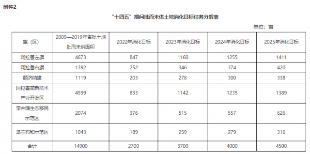 2.“十四五”期間批而未供土地消化目標任務分解表
