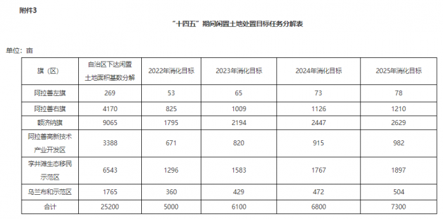 3.“十四五”期間閑置土地處置目標任務分解表
