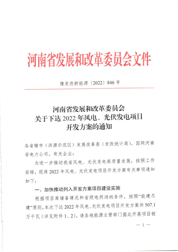 10月20日,河南省發(fā)改委發(fā)布了《關(guān)于下達(dá)2022年風(fēng)電、光伏發(fā)電項(xiàng)目開發(fā)方案》的通知。文件顯示,河南省本次下達(dá)2022年風(fēng)電、光伏發(fā)電項(xiàng)目開發(fā)方案共507.1萬千瓦。其中集中式光伏35萬千瓦,分布式光伏16.102萬千瓦;風(fēng)電456萬千瓦。其中儲(chǔ)能配置要求按照20%~55%、時(shí)長(zhǎng)2~4小時(shí)不等。