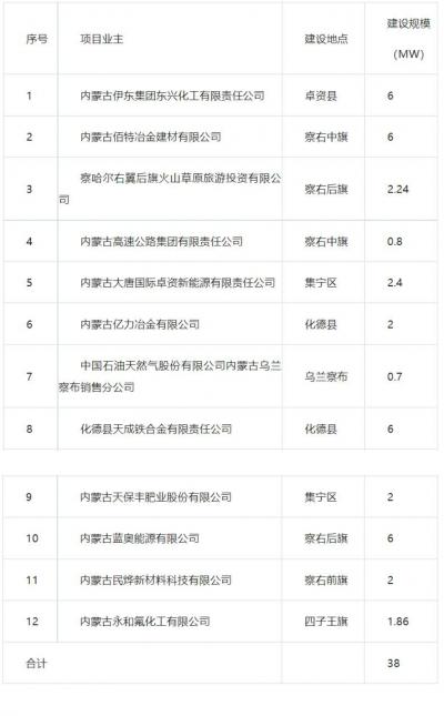 關于烏蘭察布市2023年分布式光伏發電項目優選結果的公示