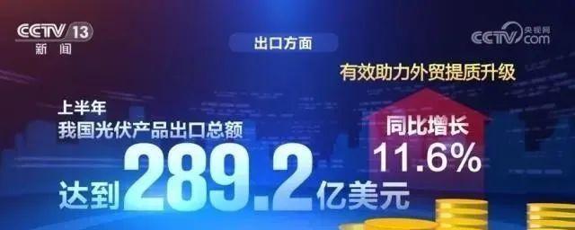 出口方面,上半年,我國光伏產品出口總額達到289.2億美元,同比增長11.6%,有效助力外貿提質升級。