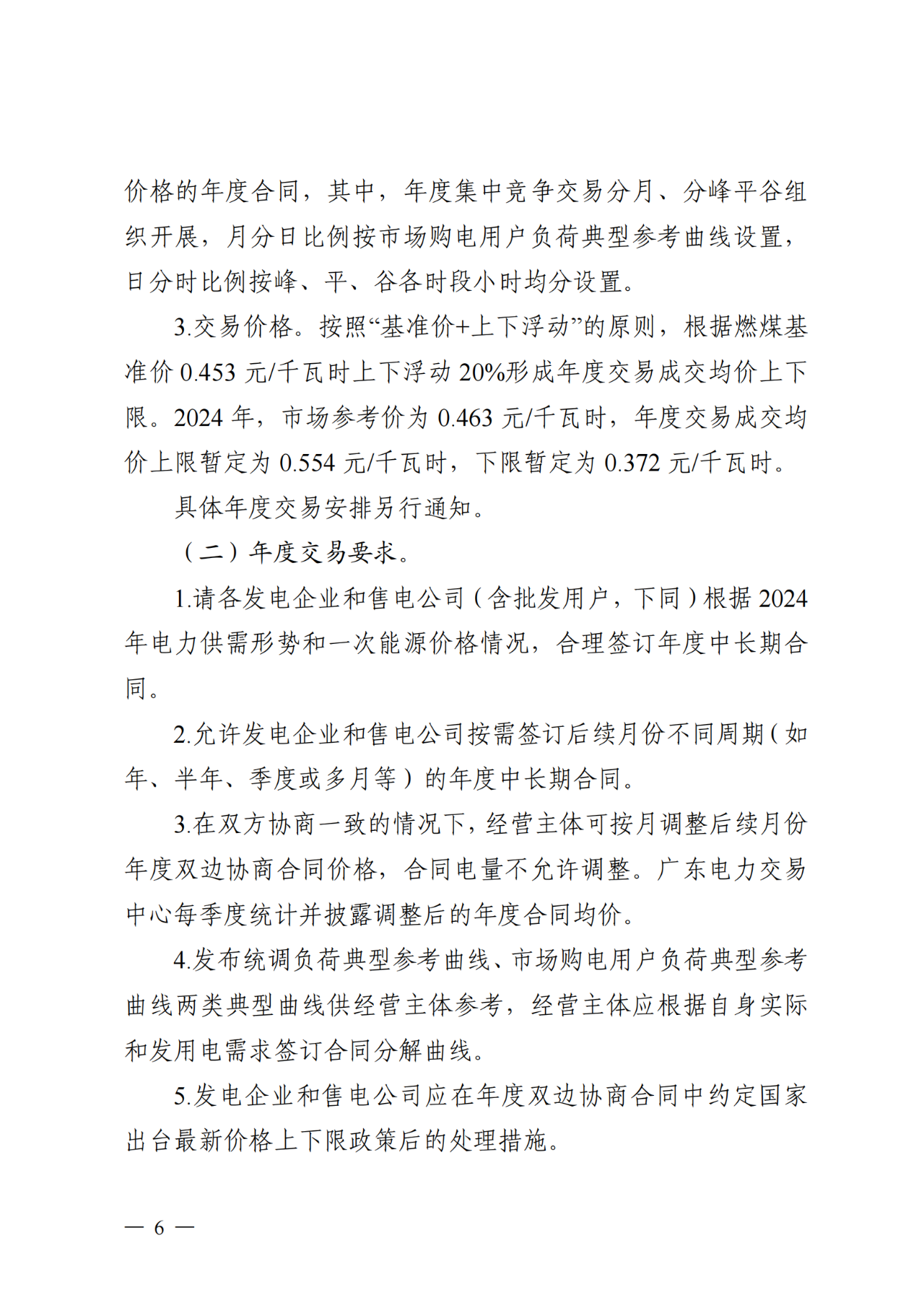 11月21日,《廣東省能源局 國家能源局南方監管局關于2024 年電力市場交易有關事項的通知》(粵能電力函〔2023〕704號)文件發布,對廣東省2024年電力市場交易有關事項作出如下安排: