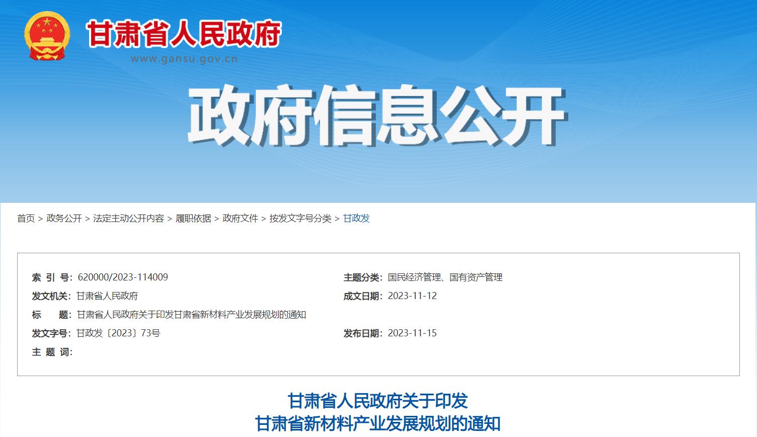 甘肅省新材料產業發展規劃