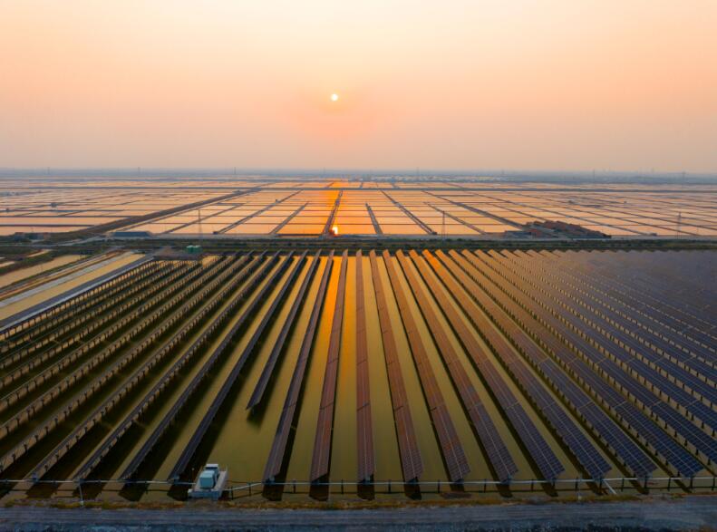 走進濰坊濱海風光儲智慧能源示范基地,波光粼粼的鹽池水面上,一排排光伏板、一座座逆變器機組整齊排列,與蔚藍的天空交相輝映,宛若一片盛放在廣袤鹽田上的光伏“藍海”,在陽光的映照下熠熠生輝,勾勒出一派科技創(chuàng)新與生態(tài)環(huán)境相得益彰的生態(tài)畫卷。