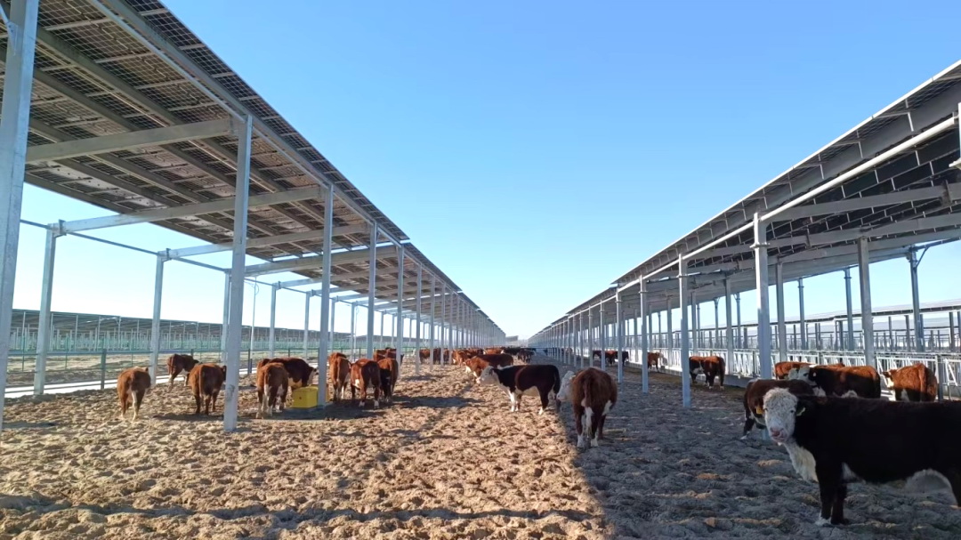 項目分三期建設,一期占地9380畝,建設內容包括育肥牛欄、動物保健中心、全混合日糧中心、升壓站及送出線路等設施。其中,育肥牛欄建設面積達150萬平方米,建成后,養殖規模可達存欄肉牛10萬頭、年出欄肉牛20萬頭,將成為亞洲最大的牧光融合產業集群。超級牧場內育肥牛舍屋頂光伏及草光互補區地面光伏兩部分組成,光伏總裝機容量398兆瓦。