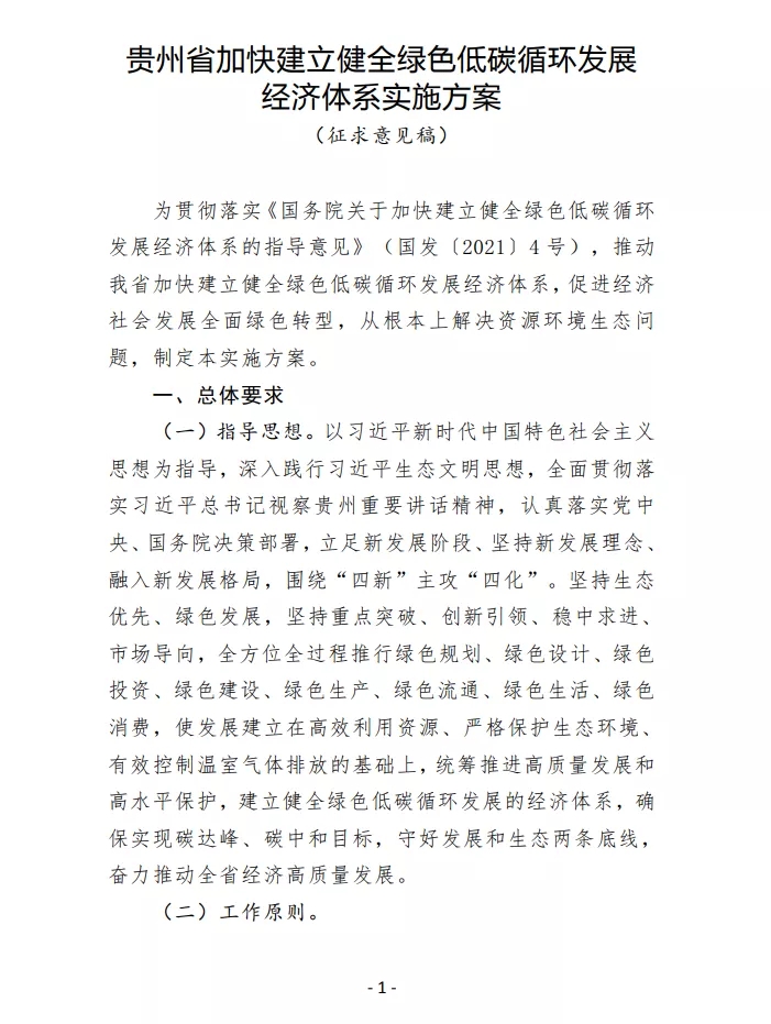 10月12日,貴州省發改委發布《貴州省加快建立健全綠色低碳循環發展經濟體系實施方案(征求意見稿)》 公開征求意見。