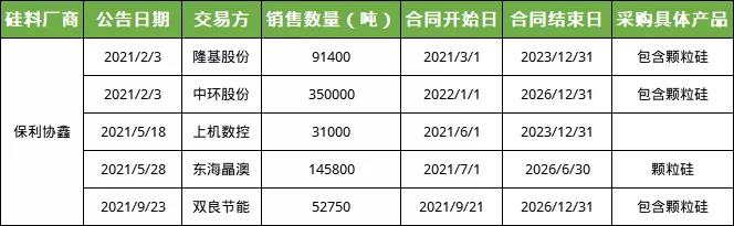 保利協(xié)鑫與晶澳簽訂顆粒硅采購(gòu)長(zhǎng)單:晶澳將于未來(lái)5年向協(xié)鑫采購(gòu)總計(jì)14.58萬(wàn)噸顆粒硅,顆粒硅進(jìn)一步獲得下游客戶(hù)的認(rèn)可。