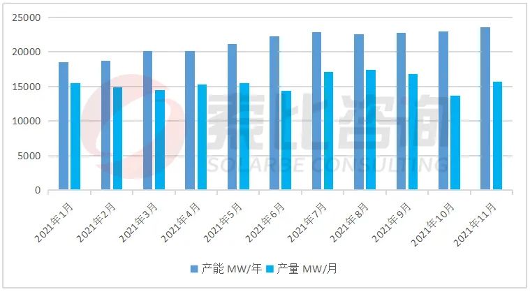 圖:2021年組件產(chǎn)量(單位:MW)