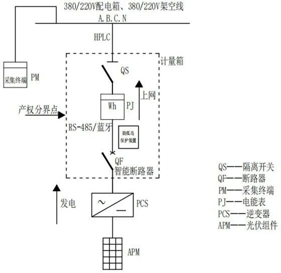 要實(shí)現(xiàn)上述目標(biāo),低壓分布式光伏計(jì)量采集需要安裝的主要設(shè)備包括:采集終端、智能電能表、電流互感器、智能斷路器、防/反孤島保護(hù)裝置等