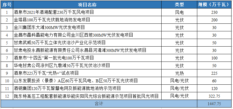 計(jì)劃新開工項(xiàng)目中,風(fēng)電項(xiàng)目5個(gè),規(guī)模2GW;光伏項(xiàng)目8個(gè),規(guī)模2.95GW;風(fēng)光項(xiàng)目1個(gè),規(guī)模2.77GW。