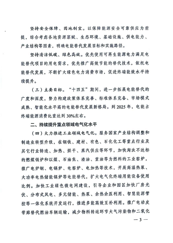 目標稱,到2025年,電能占終端能源消費比重達到30%左右。