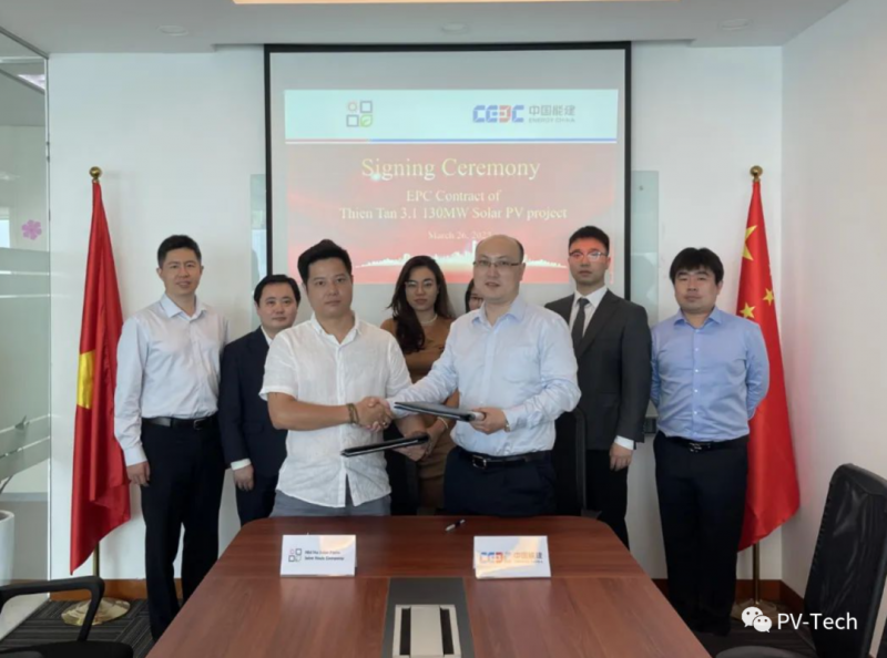 3月26日,中國能建國際集團與中國能建葛洲壩國際公司組成的聯營體與越南二河光伏項目股份公司在越南河內簽署了越南天新3.1號130兆瓦光伏電站項目,實現了越南電力市場滾動發展。