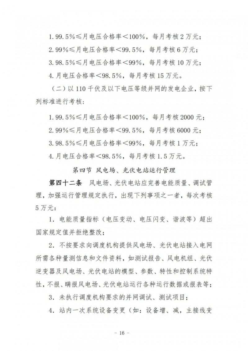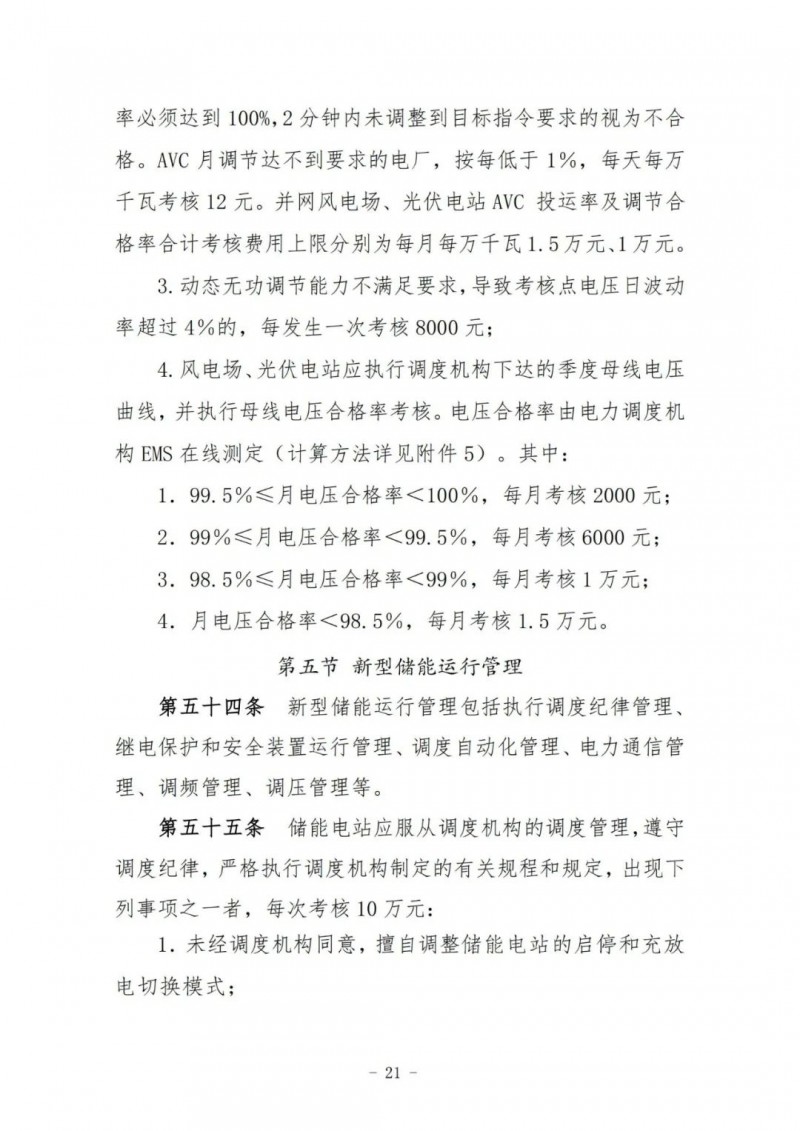 風電場、光伏電站執行并網主體運行管理考核及風電場、光伏電站運行考核,其考核費用返還按當月所有風電場、光伏電站額定容量(含配套儲能)比例分別計算分配。