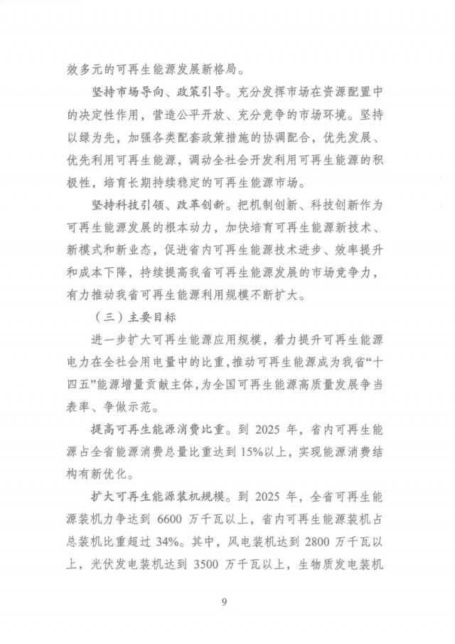 ● 提高可再生能源消費比重:到 2025 年,省內(nèi)可再生能源占全省能源消費總量比重達到15%以上,實現(xiàn)能源消費結構有新優(yōu)化。