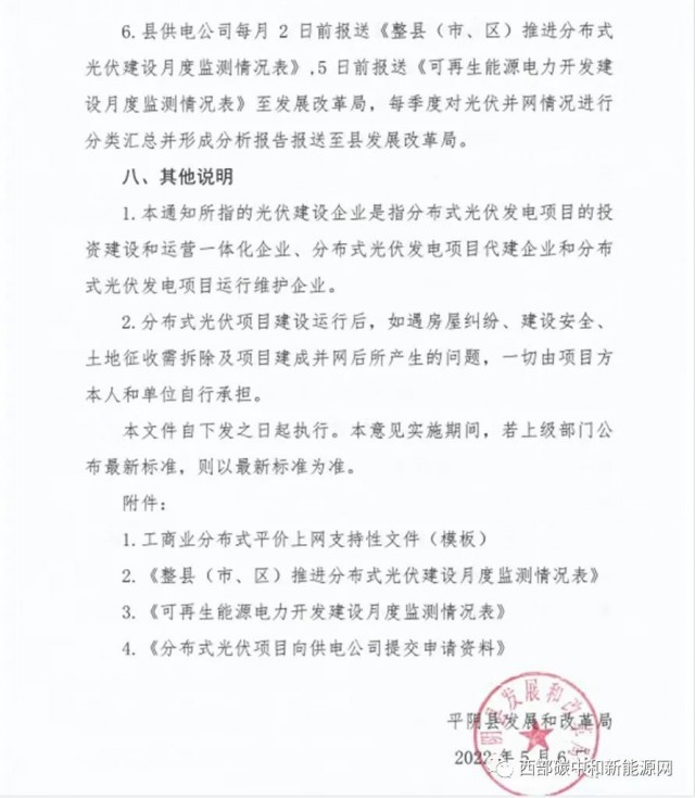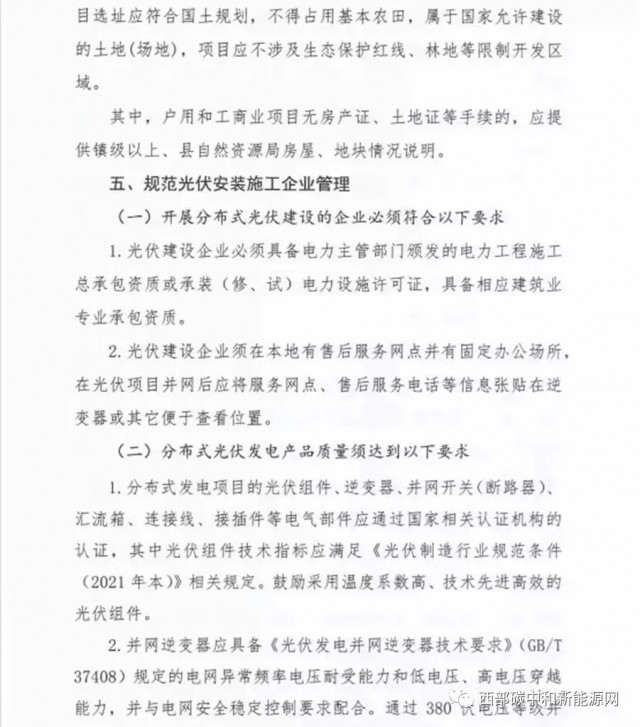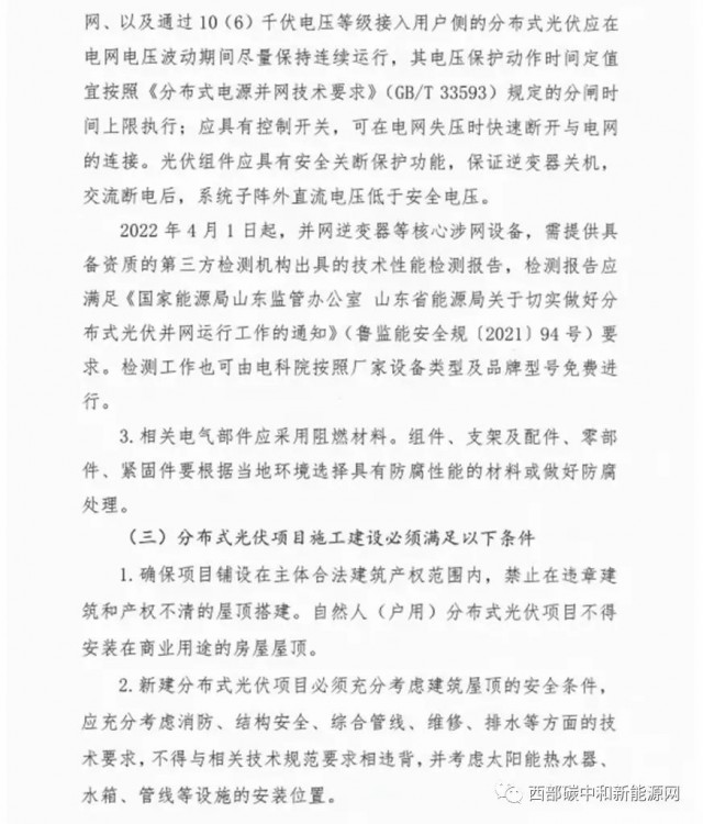 此外,整縣分布式開發按照“光伏+儲能”方式推進,根據具體消納情況配建或租賃不低于15%、2小時的儲能設施。電網消納能力不足時,應提高儲能配置比例及充放電時長,確保分布式光伏就地就近消納、滿足95%利用率要求。