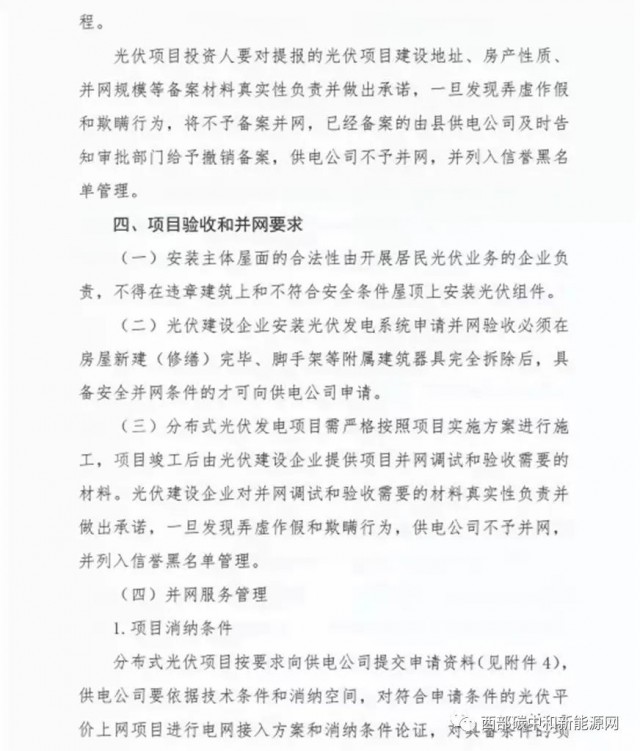 山東省濟南市平陰縣發改局印發《關于進一步加強分布式光伏項目備案、建設及并網管理的意見》,文件提出分布式光伏應就地就近消納。原創上各類光伏總計開發規模不應超過本區域全年最大用電負荷60%,避免向220千伏及以上電網反送電。根據就地就近消納要求,原則上分布式光伏電力在接入電壓等級及以下電網范圍內消納。