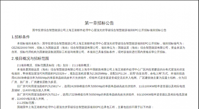 2022年對于郵件處理中心裝光伏的投資也逐漸火熱。9月13日,上海市中國郵政有限公司廠區內投資建設的分布式屋頂光伏發電項目,明確新舊廠房都要裝光伏!整體規劃屋頂可利用面積約23329㎡,新、舊廠房可利用屋頂面積分別約為7512㎡、15817㎡,規劃總裝機容量2.2825MWp,采用“自發自用,余電上網"方式。共計選用4150塊單面單晶硅高效光伏組件。