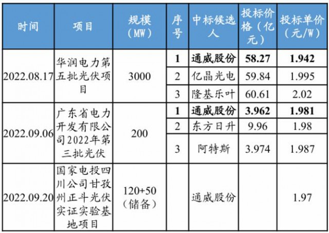 圖:通威股份光伏組件中標情況,來源:東吳證券