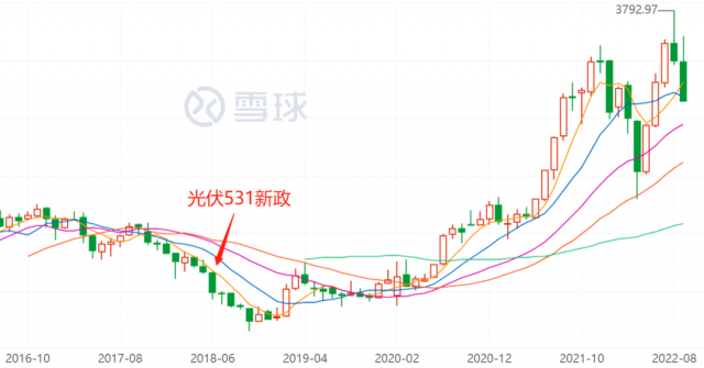 光伏產業的強勢并非從一而終,最近一次市場記憶猶新的渡劫是,由于發電成本總是居高不下,在產業補貼退坡(531新政)后,市場一度對光伏產業的未來充滿疑慮,上市公司的整體估值跌至歷史低點。