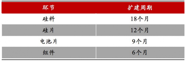 圖:光伏主產業鏈各環節擴產周期,來源:各公司公告,東亞前海證券研究所