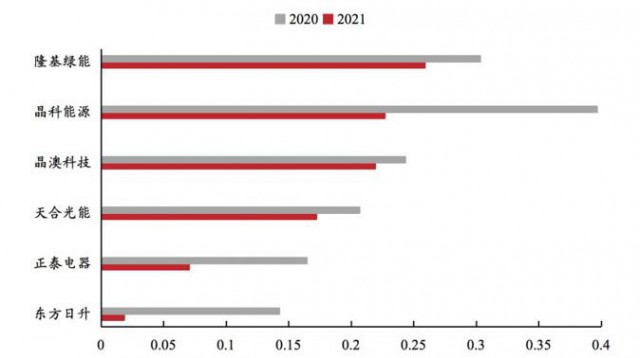 圖:2020-2021組件業務單瓦盈利情況(元/W),來源:Wind,東亞前海證券研究所
