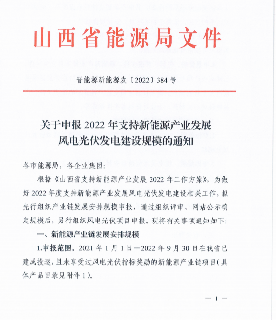 申報2022年支持新能源產業發展風電光伏發電建設規模通知