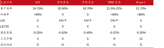 表:HJT電池優勢