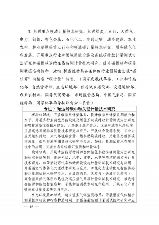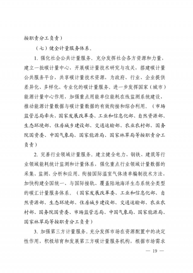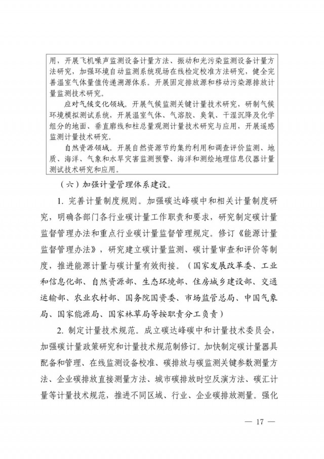 作為碳達峰碳中和“1+N”政策體系中重要文件之一,提出了完善碳排放基礎通用標準體系、加強重點領域碳減排標準體系建設、加快布局碳清除標準體系、健全市場化機制標準體系、完善計量技術體系、加強計量管理體系建設、健全計量服務體系7個方面的24項重點任務,明確了實施碳計量科技創新工程、碳計量基礎能力提升工程、碳計量標桿引領工程、碳計量精準服務工程、碳計量國際交流合作工程5項重點工程,開展雙碳標準強基行動、百項節能降碳標準提升行動、低碳前沿技術標準引領行動、綠色低碳標準國際合作行動4項重點行動,并對協調推動各項工作落實提出相應要求。
